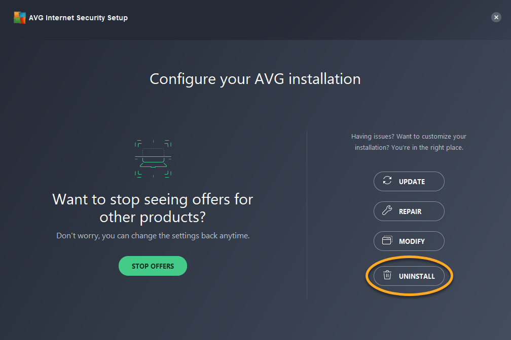 - Click Uninstall in the AVG Setup wizard.
